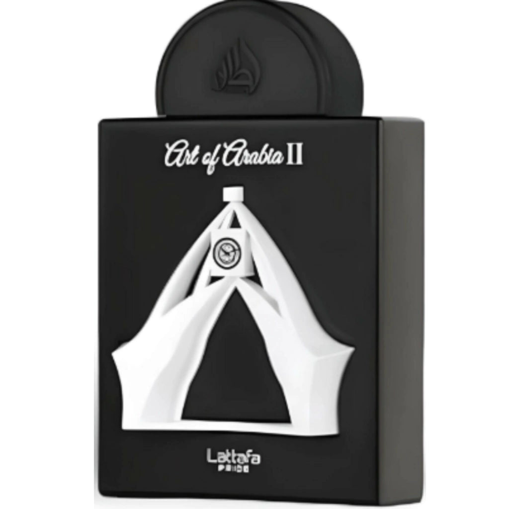 Art of Arabia II de Lattafa Perfumes é um perfume Amadeirado Especiado Compartilhável. Esta é uma nova fragrância. Art of Arabia II foi lançada em 2023. As notas de topo são: Heliotrópio, Pimenta Rosa, Cardamomo e Bergamota. As notas de coração são: Jasmim, Lavanda e Amêndoa. As notas de fundo são: Agarwood (Oud), Madeira Guaiac, Sândalo e Baunilha.